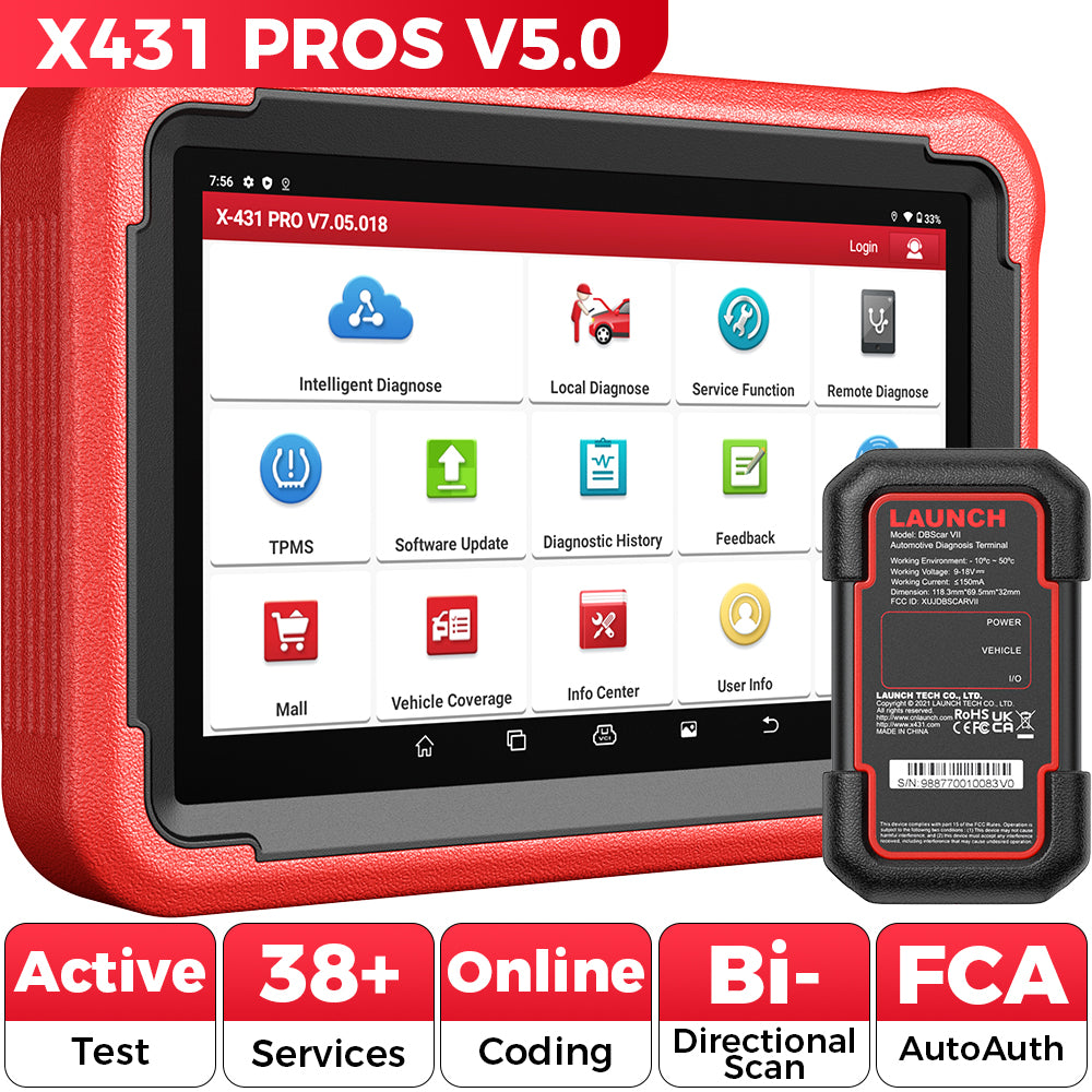 NEWEST LAUNCH X431 PROS V5.0 A diagnostic scanner designed for professional mechanics, with the same functions as X431 V+, such as 31+ reset service; ECU coding; active test; flash hidden function; key programmer, VAG boot function; Automated verification of FCA SGW. And launched x431 PROS V5.0 to provide 2 years of free updates, which will save you more expensive subscription fees than 1-year subscription-free scanning tools. In addition to the typical service functions you might expect such as oil reset, injector coding, brake reset, SAS reset, ABS bleed, and throttle matching, there are many other functions in the LAUNCH x431 PROS V5.0 diagnostic tool that Can make service a breeze in your workshop: TPMS Reset, DPF Reg, Gear Learning, AFS Reset, EGR Adaption, Sunroof, SUS Reset, Windows Calibration and more cover 99% of your car repair and maintenance needs.