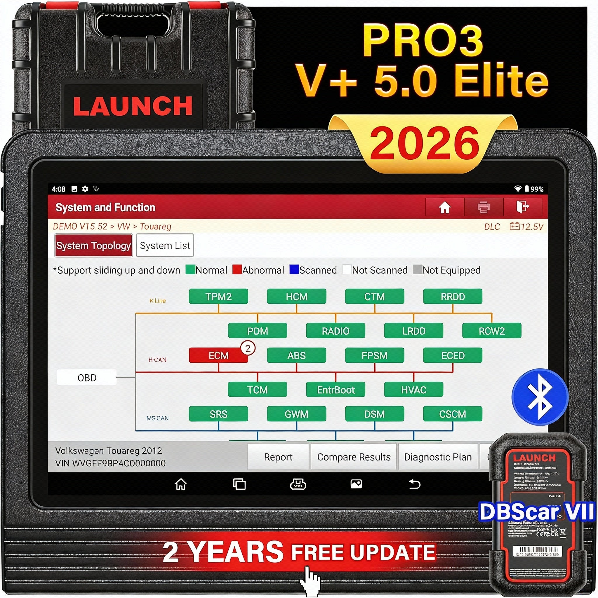 - NO-IP Limited Update & 2 years update & 5+1Years Extended waranty: LAUNCH X431 V+ can do One-click NO-IP limited update ,wherever you are.You also can do get help by the Diag-Feedback Menu. You also can get 2 years update.