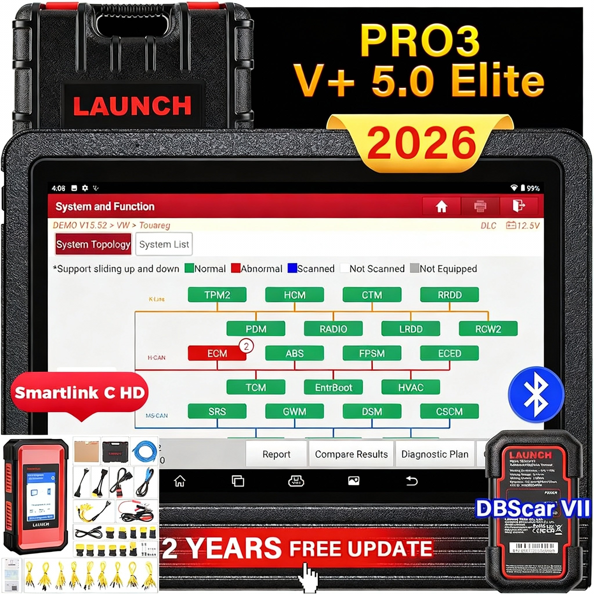 OEM Topology Mapping, CAN FD & DoIP, HD Trucks Scan, Online Coding&50+ Service for All Cars, Full System Diagnostic, Key IMMO, Guide Functions, FCA & Renault SGW, 2-Year Free Update, 10.1inch